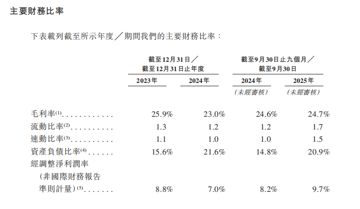 从集中度看,其招股书显示,2023年前五大供应商采购额占比为42.5%,2024年为38.7%,截至2025年9月30日止9个月为30.9%,同期最大供应商采购额占比为12.8%、13.1%、9.9%。这组变化至少意味着集中度指标下降,最大供应商占比在2024年略升,2025年前9个月下降。而原材料来源更分散,理论上更利于对冲某个供应商产能、交付或合规事件带来的扰动。