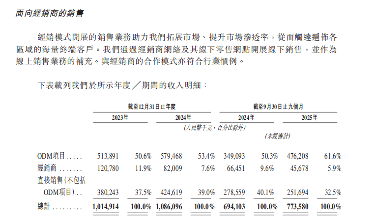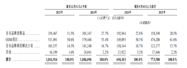 而鹿客科技招股书显示,截至2024年12月31日止,ODM项目收入占比53.4%,自有品牌消费品收入占比27.7%,自有品牌商业解决方案收入占比16.7%,其他业务占比2.2%。与截至2025年9月30日止9个月的61.6%和20.5%相比,呈现出的是其收入重心进一步向ODM集中,自有品牌消费品占比同步走低。这一走势引发了一个关键疑问,在资源有限的前提下,这种变化是否意味着,在当下的经营实践中,确保大客户订单的稳定交付与份额增长,已经在事实上占据了比推动自有品牌发展更高的优先级?其业务结构本身,是否正推动资源分配朝这一方向倾斜?