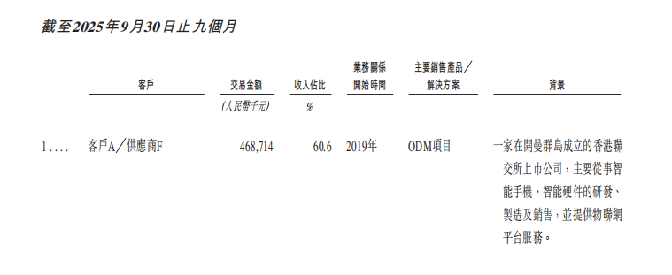 从客户集中度看,或能看出这种重心进一步强化的表现。其招股书显示,截至2023年12月31日止年度、截至2024年12月31日止年度、截至2025年9月30日止9个月,前5大客户合计收入占比分别约为53.6%、56.8%、65.2%,向第一大客户的销售额占比分别约为48.6%、51.7%、60.6%。当第一大客户占比走到60.6%,企业的经营旋律是否在一定程度上很难不围绕核心客户的稳定供给展开?