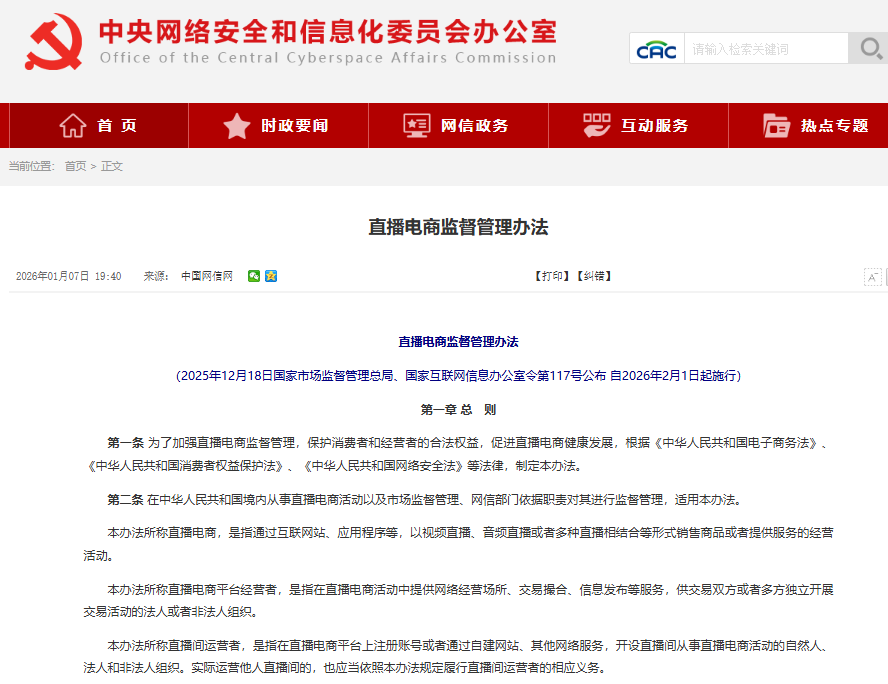 值得注意的是,《直播电商监督管理办法》2025年12月18日国家市场监督管理总局、国家互联网信息办公室令第117号公布,自2026年2月1日起施行。对平台而言,这关系到直播间、商城与客服之间能否形成闭环,店铺、评价、退款与赔付能否协同推进、能否形成完整支撑,是否能在全链条中持续合规。