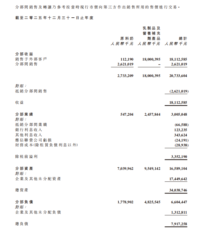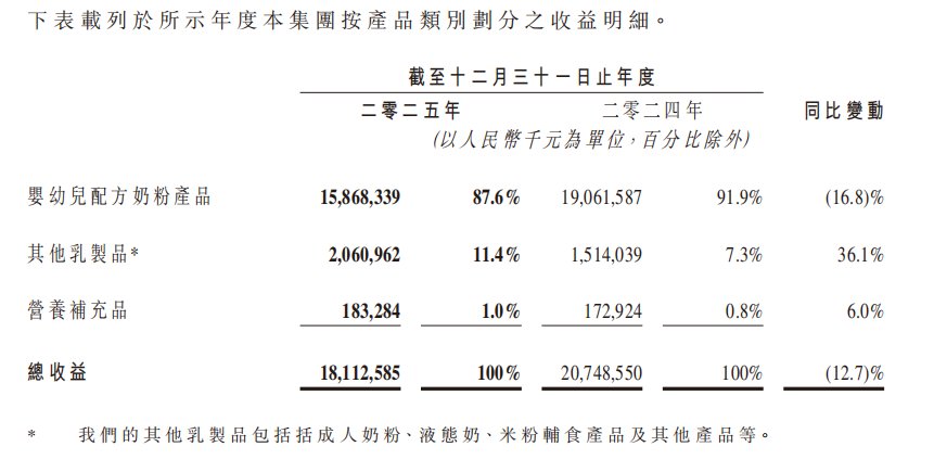 从乳制品及营养补充剂产品这一整块业务来看,其2025年财报数据显示,该分部销售予外部客户的收益由2024年的205.94亿元降至2025年的180.00亿元;分部业绩则由50.27亿元降至24.58亿元。这组分部数据在一定程度上进一步说明,婴配粉之外虽已有扩容,但在整块乳制品与营养补充剂业务中,新增部分仍未改写利润收缩更快这一结果。