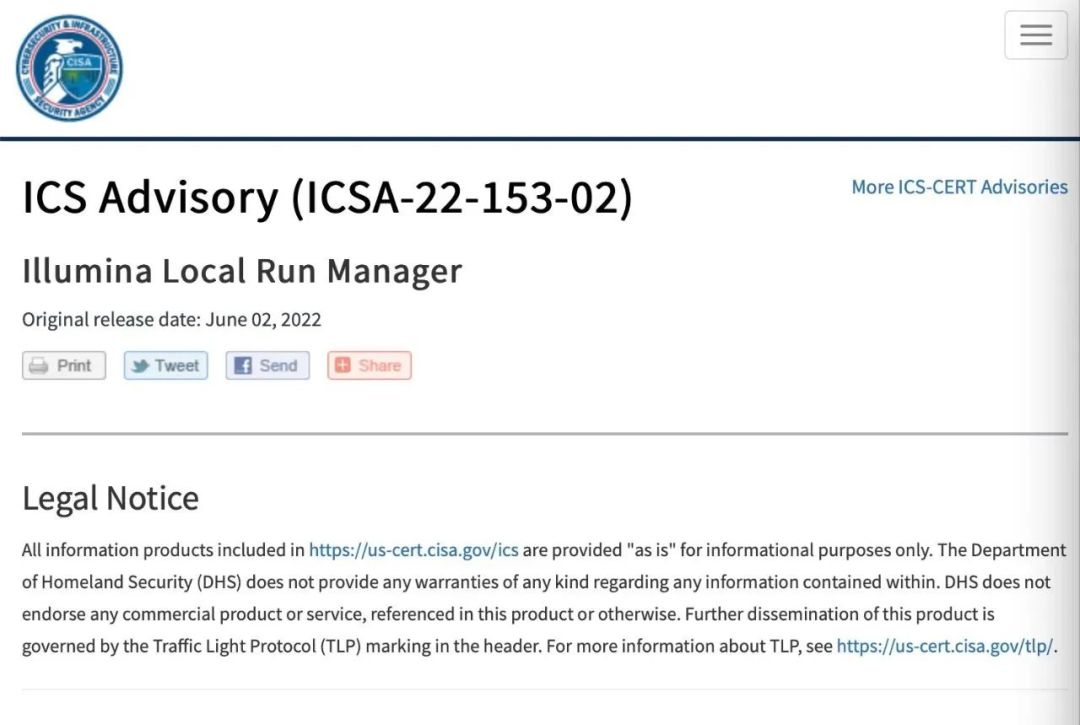 到了2023年4月27日,美国食品和药物监督管理局(FDA)继续在官网发布《致医疗保健提供者的信》,提醒因美纳产品的用户以及实验室相关工作人员,因美纳相关产品存在网络安全漏洞,FDA希望医疗保健提供者和实验室人员了解减轻这些网络安全风险所需采取的行动。