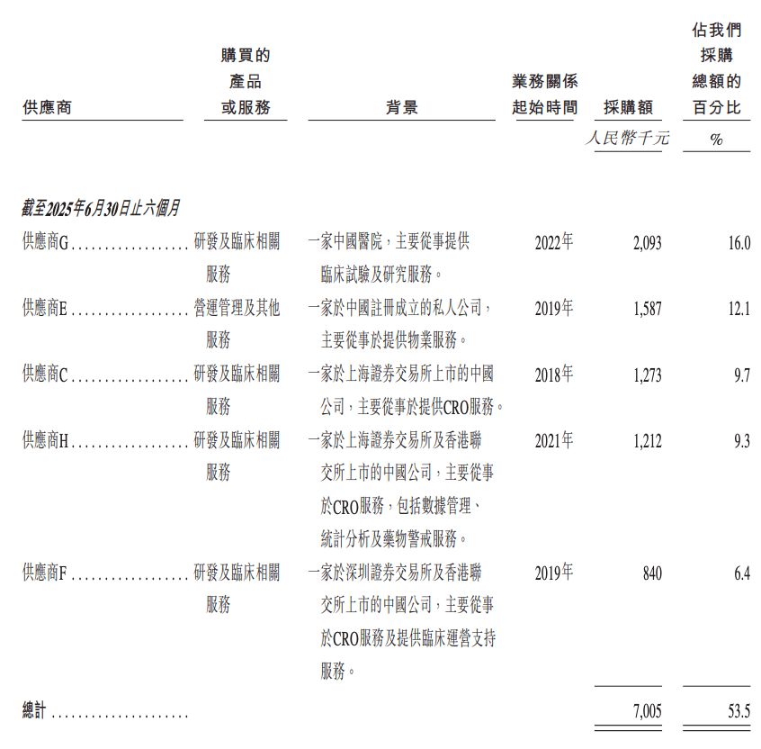 但值得注意的是,2025年上半年,公司前五大供应商中未出现CDMO企业,可能是中试及样品生产活动明显减少,研发节奏处于收缩期,优先保障临床推进。
