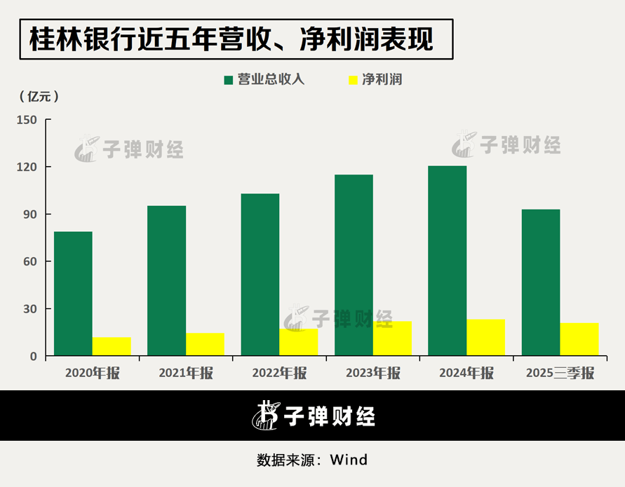 财报数据显示,截至2025年9月末,桂林银行并表口径下实现营业收入92.91亿元,同比下降2.45%,实现净利润21.01亿元,同比下降7.58%。