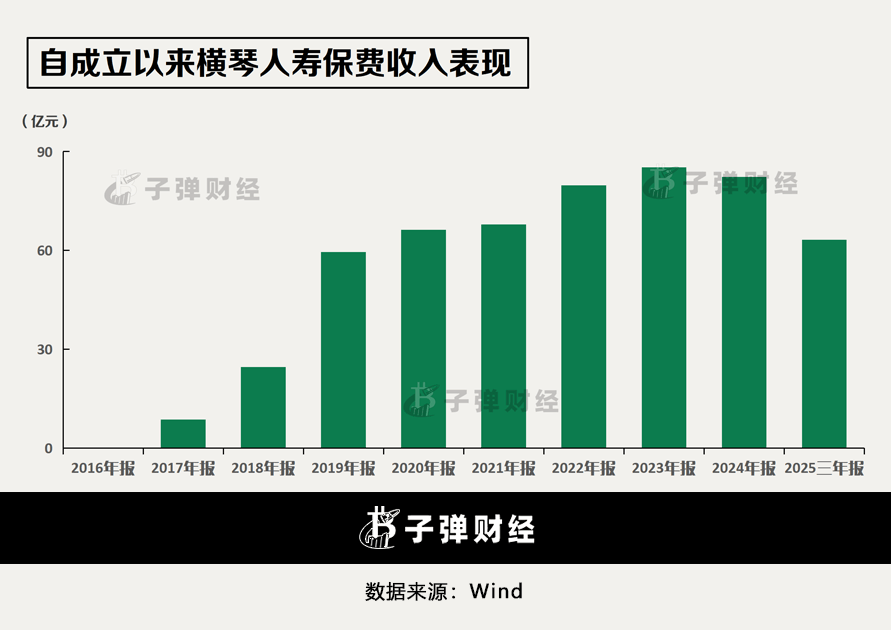 Wind数据显示,自横琴人寿成立以来,除两个年份短暂盈利外,其余年份均处于亏损状态。近年来,保费下滑问题同样困扰着这家寿险公司。