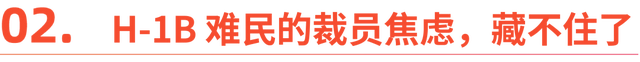 Alice戏称自己为“H-1B难民”。她坦诚,如果被裁了,她是绝对不能躺平的,必须要在两个月之内找到工作,不然就得回国。“这是我最不愿意面对的状况,我无法适应国内的职场和工作强度,而且我父母也希望我能在海外多呆几年。”
