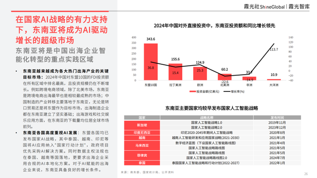东南亚作为最具增长潜力的新兴市场,正成为AI赋能中国企业出海的重点试验场。积极的国家AI战略、日益完善的数字基础设施,以及与中国产业结构的互补性,为AI技术落地提供了广阔空间。然而,出海之路也面临基础IT本地化、网络延迟与稳定性、数据合规与安全等多重挑战。