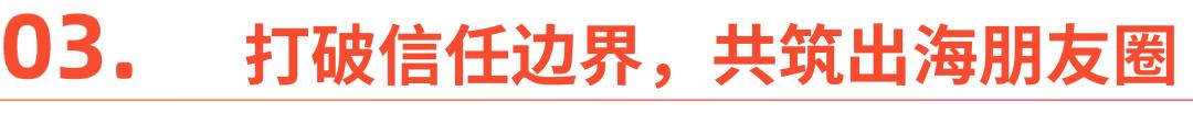 因此,出海企业想实现海外扩张、打破信任边界,就需要扩大海外资源和合作伙伴,打造海外的“朋友圈”。