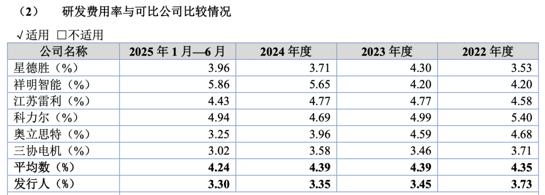 在技术飞速发展的今天,研发能力是企业保持竞争力的关键。招股书显示,晨光电机的研发费用率在报告期内分别为3.73%、3.45%、3.35%及3.3%,始终低于同行业可比公司的平均水平4.35%、4.39%、4.39%及4.24%。