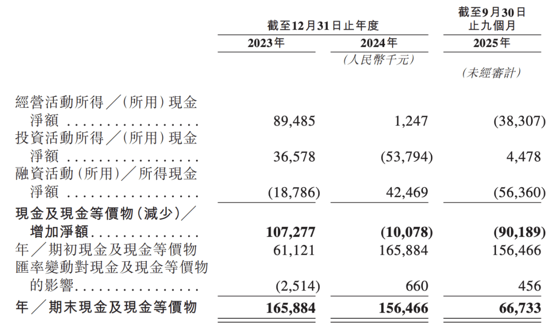 在现金储备方面,鹿客科技的消耗速度也比较快,2023年末的现金及现金等价物为1.66亿元,到2025年9月末已降至6673.3万元,相当于在1年零9个月内减少近1亿元的现金储备。