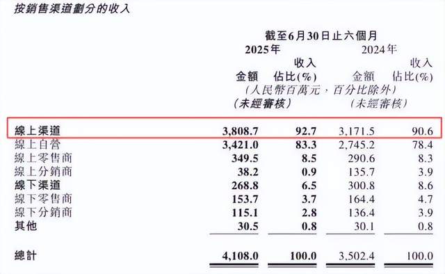 从渠道占比来看,2024年其线上渠道营收占比高达90.5%,线上自营主要依托抖音等平台,贡献收入53.12亿元,同比增长82.6%。