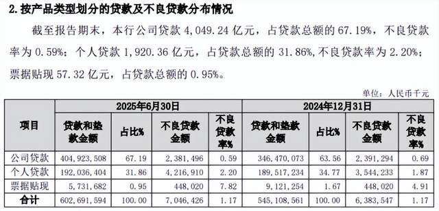 2025年上半年零售贷款规模仅增长1.33%,占比从39.18%降至31.86%;信用卡、个人经营贷、个人按揭三大核心零售业务全线负增长,信用卡贷款环比下降12.45%,仅靠个位数增长的个人消费贷勉强支撑,零售板块利润仅0.57亿,不足公司业务33.97亿的零头。