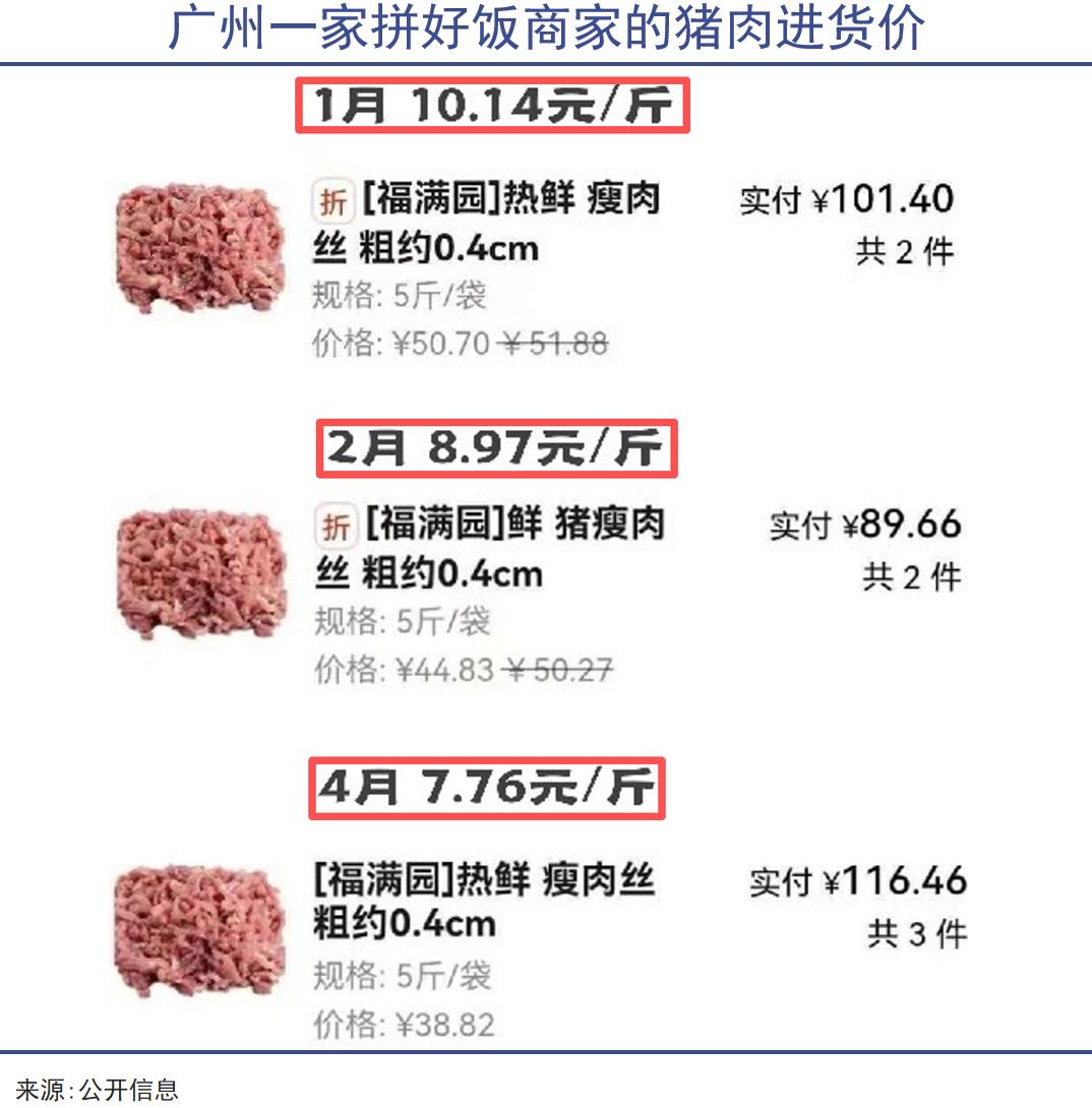 但硬币的另一面是:对消费者来说,这是近年来吃肉成本最低的时刻。而且这种低成本的现实也在沿着产业链向下传导——传导到每份外卖盖饭的价格里。