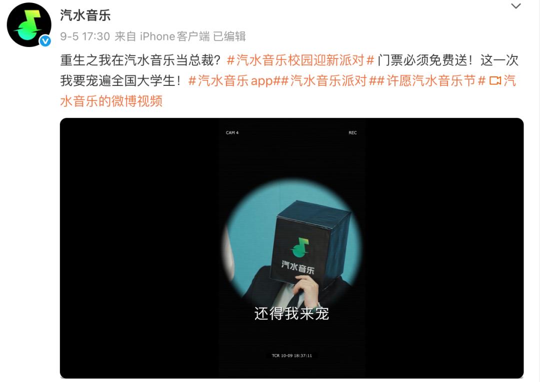 汽水音乐校园迎新派对宣发,图/汽水音乐官方微博