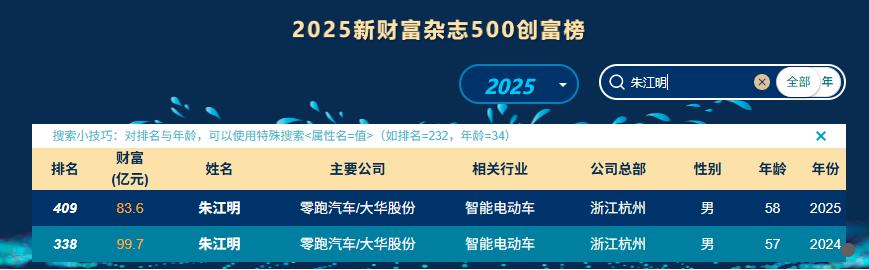 2025年,朱江明凭借83.6亿元的身家位列新财富杂志500创富榜第409名,个人财富相比2024年减少了16.1亿元。