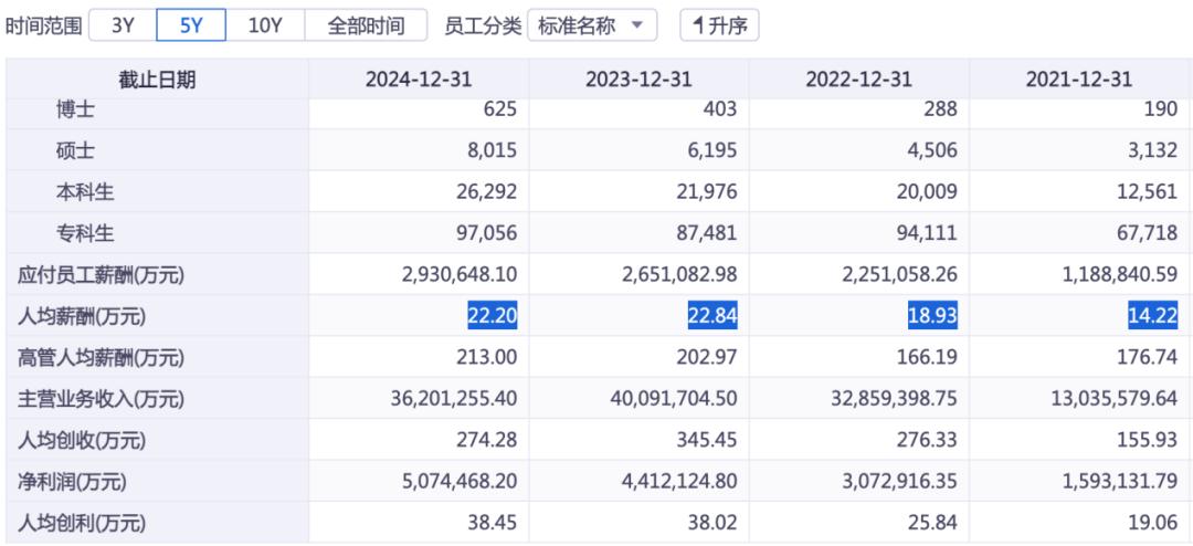 去年人均薪酬超22万,前三季度日赚2亿