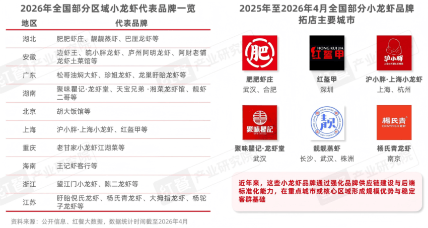 我国小龙虾品牌的区域性发展特征较为明显。当前,湖北、安徽、湖南、重庆、广东、海南、江苏等地均涌现出一批发展较为成熟的小龙虾品牌。这些品牌长期深耕当地市场,积累了较高的知名度与口碑基础,形成了稳定的消费客群,成为当地的小龙虾“区域王者”。
