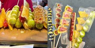 传统冰糖葫芦基本以山楂、草莓为原料,口感多集中在脆糖壳加上酸甜果肉的组合上,而奶皮子的加入则增加了一种绵密的口感层次。一些商家还会撒上脆香米,果肉中间又夹带酸奶馅,进一步提升了口味体验。这种小创新的聪明之处就在于,它既保留了糖葫芦的国民记忆点,又做出了新鲜感,自然更容易被消费者接受与喜爱,最后成功破圈。