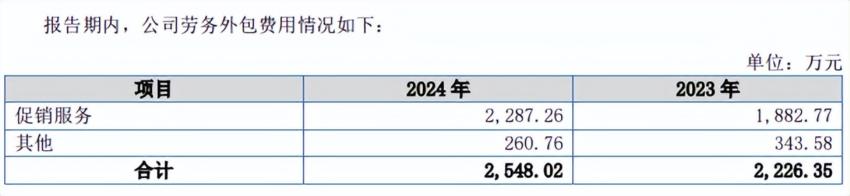 2023年、2024年,该公司劳务外包金额分别为2226.35万元、2548.02万元,在整个销售费用(主要由外包服务和职工薪酬构成)的占比分别为89.13%和88.40%。从中也可以看出,在销售环节,新天地对劳务外包存在很强的依赖。