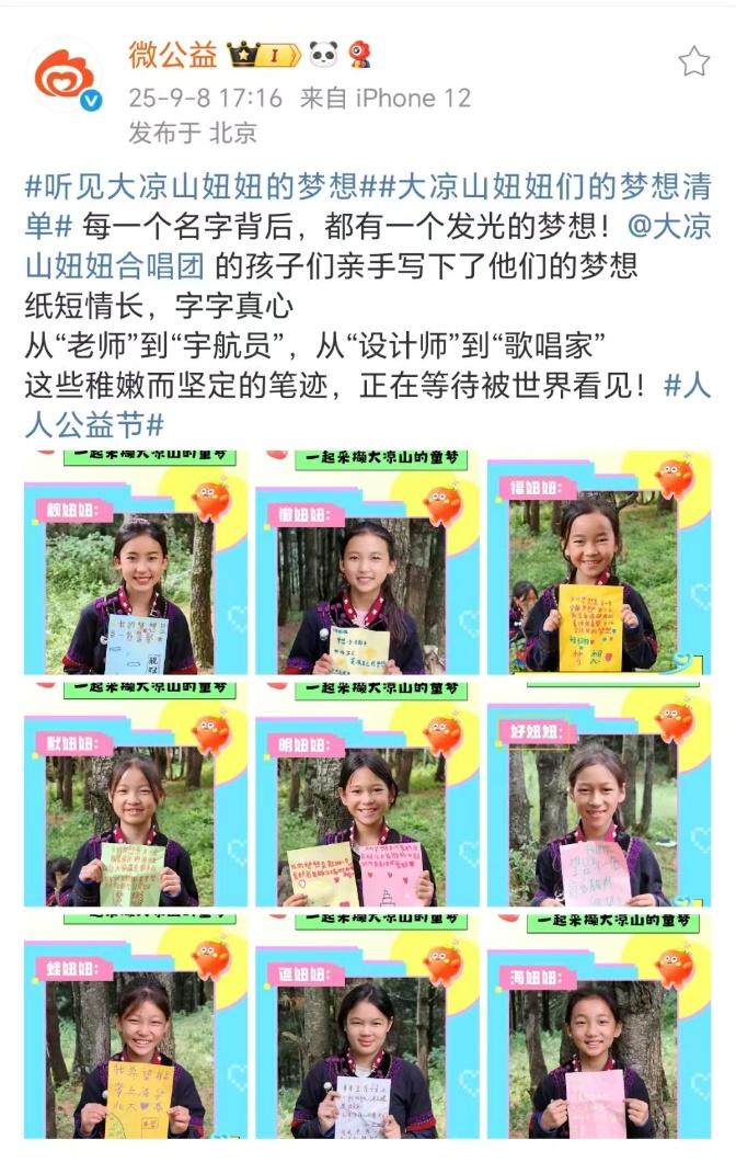 几个月后,微博“人人公益节”期间,跨域博主@花叔 与微博公益合伙人@帽帽moer 走进四川大凉山普格县大槽乡中心小学,陪伴孩子们走过上学山路,聆听妞妞们心底梦想。
