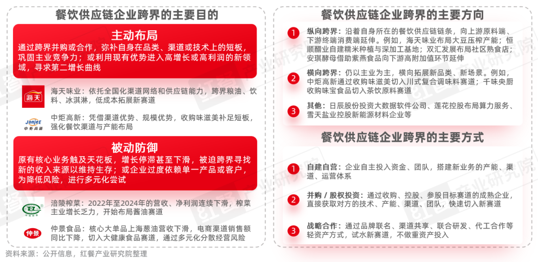 一方面,企业通过跨界并购或合作,弥补自身在品类、渠道或技术上的短板,巩固竞争力;或利用现有优势进入高增长或高利润的新领域,寻求第二增长曲线。如安琪酵母借助紫燕食品向下游高附加值环节延伸。