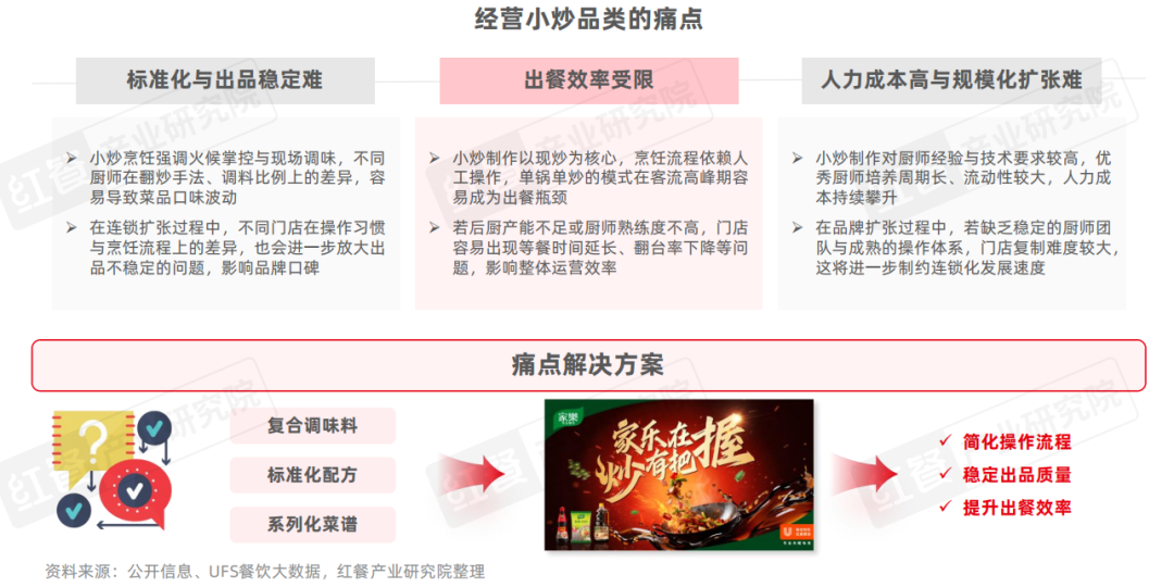 在此背景下,部分调味品企业开始推出小炒菜品解决方案,通过复合调味料、标准化配方以及系列化菜谱,帮助小炒门店简化操作流程、稳定出品质量,并提升出餐效率。