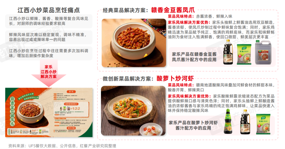 不过,由于江西小炒味型层次丰富、复合风味明显,为了达到这样的口味特征,烹饪过程中需多次加料,容易出现口味偏差且操作流程复杂。家乐针对江西小炒这一痛点,提供标准化复合调味料及菜品解决方案,使门店能够在保持鲜辣的地域特色口感的同时,简化烹饪流程,确保出品稳定且易于复制,从而提升出餐效率和口味一致性。