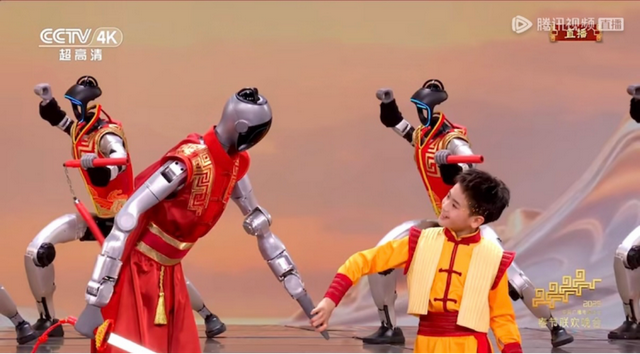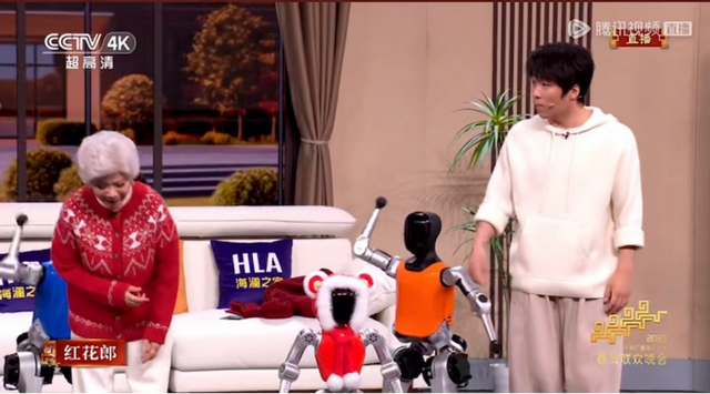 相比一年前“被人搀扶上台、颤颤巍巍扭秧歌”的亮相,这一次,它们不仅能跳能打,还会讲笑话,舞剑、与人类比武,动作更花哨,和人类的互动也更为自然,甚至出现了傻傻分不清楚的仿生机器人“蔡明”。