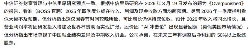 分析师认为,市场高估了替代平台的挑战。BOSS直聘凭借更丰富行为数据、更优模型与智能体能力,竞争优势将强化于同业,AI 工具亦可实现货币化。