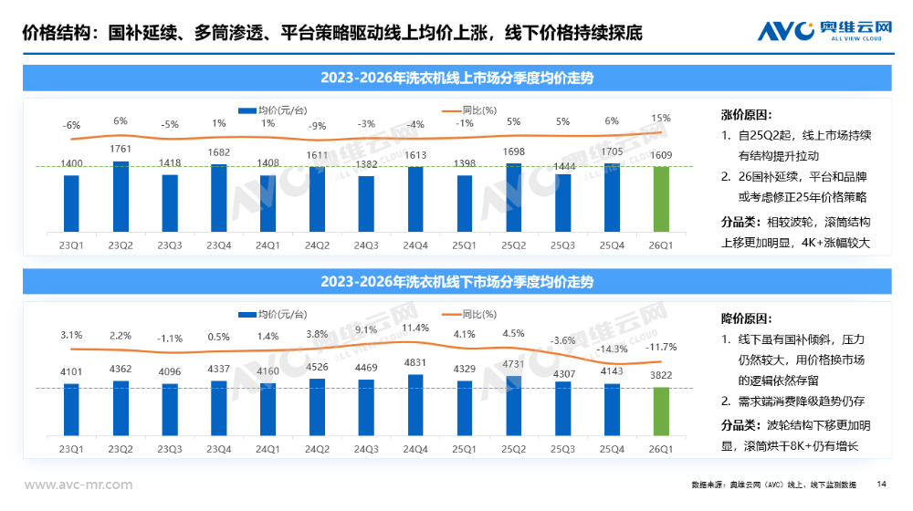 价格结构:国补延续、多筒渗透、平台策略驱动线上均价上涨,线下价格持续探底