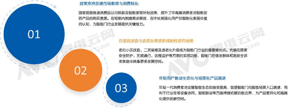 一方面,国家层面推进的消费品以旧换新及智能家居补贴政策,有效激发了中、高端用户对智能化安防产品的购买意愿,为行业发展提供关键推力。另一方面,智能门凭借其在居家安全防护、无感通行、远程管理等方面的实用价值,正契合了存量房改造与适老化需求,将成为行业重要的增长动力。
