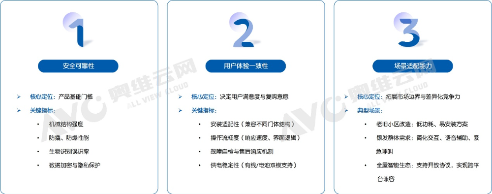 同时,奥维云网(AVC)认为,智能门行业未来市场竞争的关键分水岭,将取决于企业在以下三个维度的能力建设与落地水平。