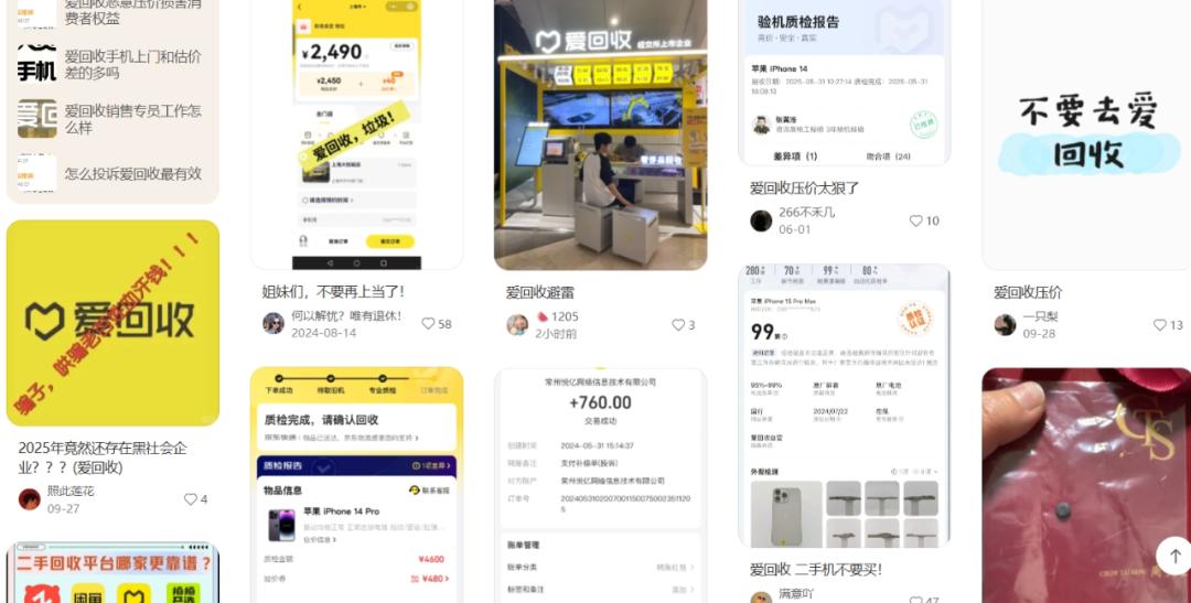 “爱回收大家还是别碰吧,太坑了,避雷”。这是小红书网友近期发布的吐槽。