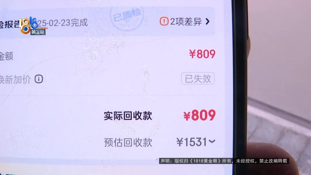 然而线下到店检测出“屏幕磨损、外观磨损”,系统将回收价格下调至809元,随后直接取消原有订单并重新生成新单,系统原本的579元补贴也失效。