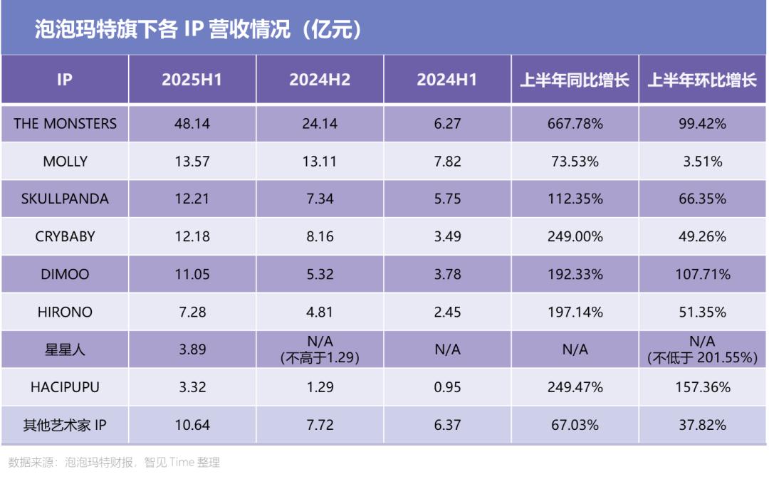 星星人的营收很快涨到了上半年的 3.89 亿。按照增长率最低估算,星星人环比增长至少有 201.55%,这个速度已经远超泡泡玛特当家花旦 Labubu 的 THE MONSTERS。