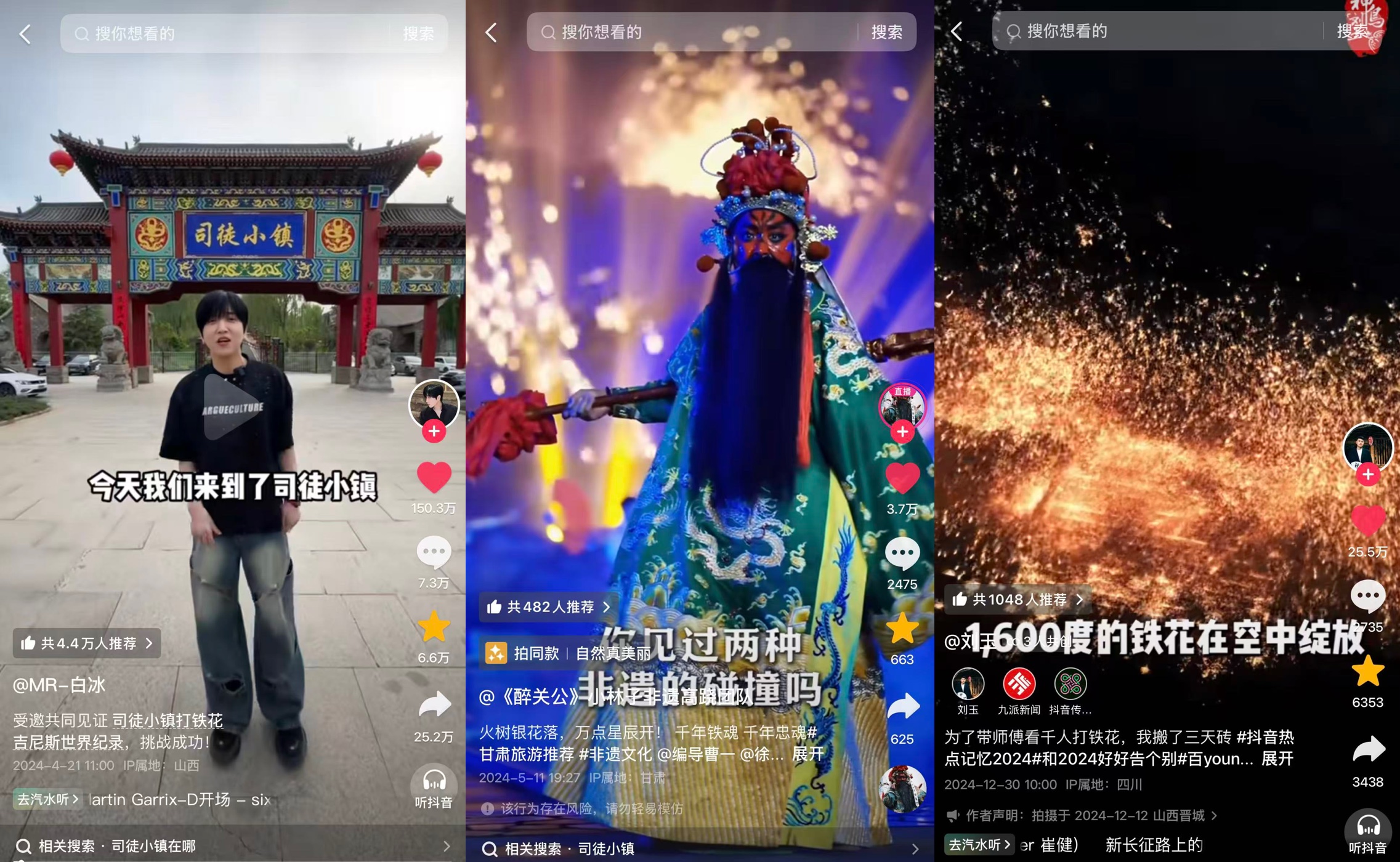 热度一直在延续。今年8月中旬,抖音生活服务和字节跳动公益“星乡村”项目落地司徒村,邀请@焦绿儿、@潘姥姥、@寒亦可、@旖旎不风光等抖音达人前往司徒村实地拍摄,相关热点#用非遗打铁花领略山西 播放超4000万。