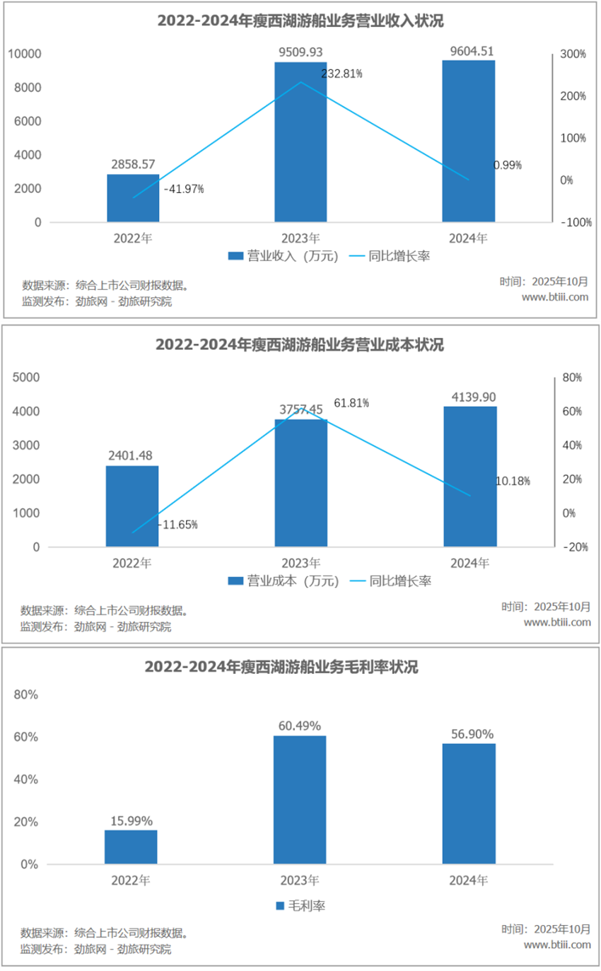 其中,游船业务实现营业收入为9604.51万元,同比增长0.99%。营业成本为4139.90万元,同比增长10.18%。毛利率为56.90%,比上年下降3.59个百分点。