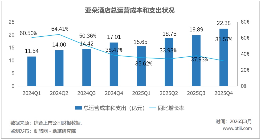 酒店业务还有另一组数据值得注意,2025年全年酒店运营成本37.16亿元,占管理加盟+租赁收入的比例63%,虽然比2024年的64.1%略有改善,但这个改善幅度非常有限,更棘手的是,销售和市场营销费用全年高达14.90亿元,同比暴增53.1%,这是整个运营费用里涨得最猛的一项,涨幅甚至超过了收入增速,翻译一下就是,为了维持扩张速度,亚朵花在买流量上的钱越来越多,单靠品牌自然拉力已经不够用了。