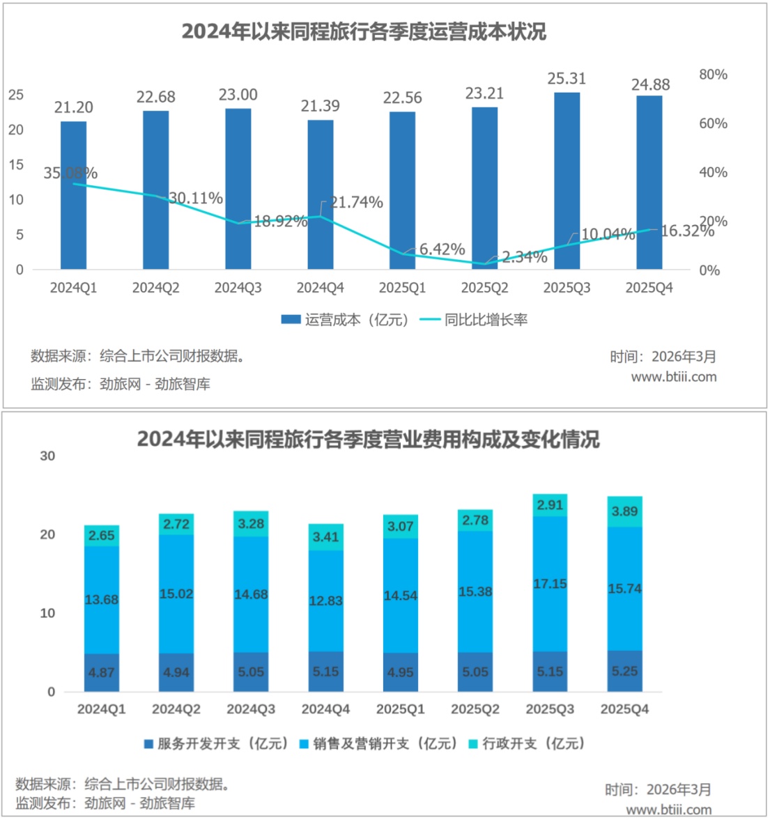 四季度,同程旅行营业费用共计24.88亿元,同比增长16.32%。其中,服务开放开支5.25亿元,销售及营销开支15.74亿元,行政开支3.89亿元。
