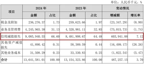 这些不良资产处置难度大、周期长,不仅吞噬了大量利润,还导致信用减值损失居高不下——2024年该行信用减值损失达90.86亿元,同比增加6.04亿元。