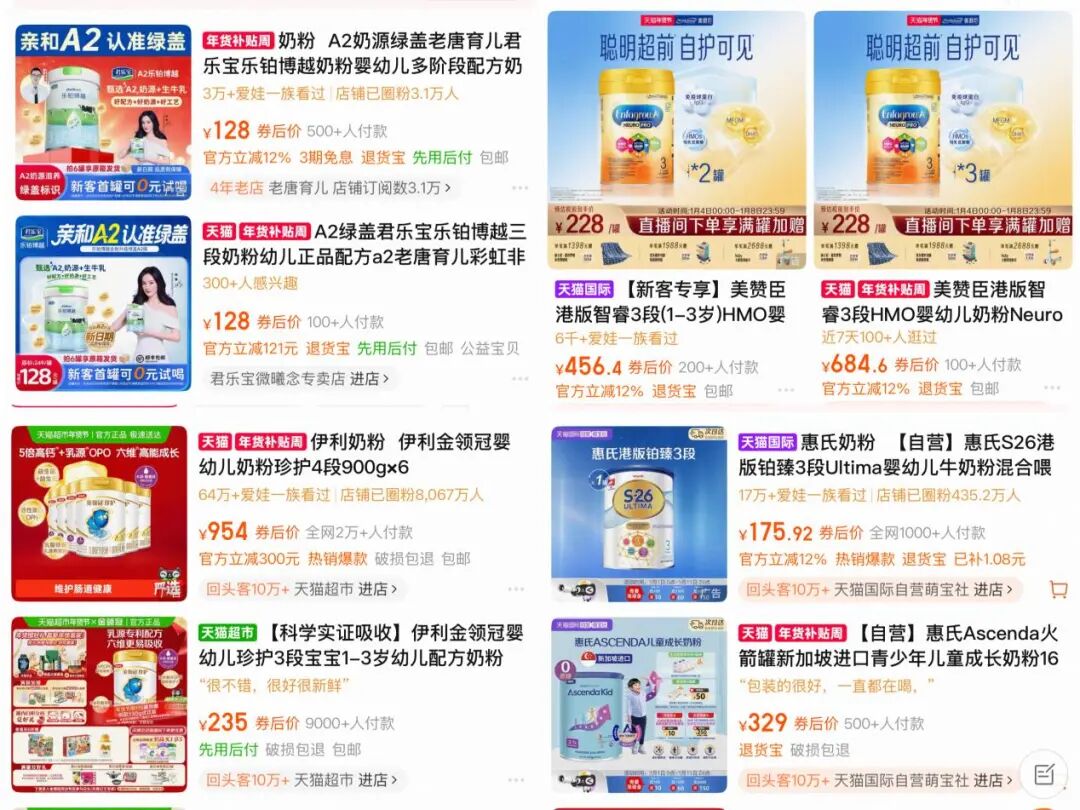 图源:淘宝平台婴幼儿奶粉类商品