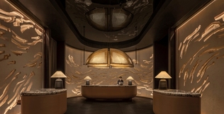 今年10月刚开业的重庆巫山华邑酒店,整体设计灵感源自当地六千年前的大溪文化与百万年的龙骨坡遗址,其公区灯具化用出土器物纹理,大堂石材隐喻滔滔江水,在地风物脆李、烤鱼融入餐饮体验,带给客人的是完全不一样的沉浸式美学体验。