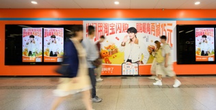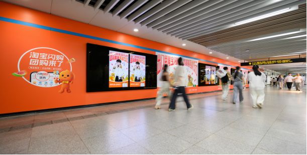 (图三,上海地铁站里可见淘宝闪购“团购来了”海报)