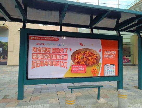 (图四,深圳公交车站的淘宝闪购1001新疆菜团购双人餐海报)