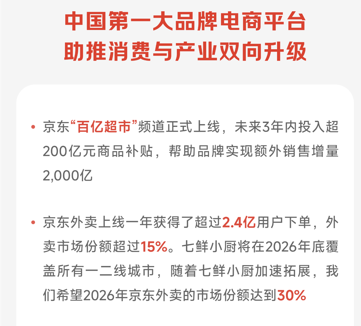 从严格准入到骑手五险一金,从七鲜小厨到AI调度,京东这一年的每一个动作,都指向同一件事:在供给侧建立一套对手难以快速复制的系统能力。市场份额目标从15%到2026年的30%,靠的不是低价——低价从来都不是竞争优势,这套供给侧结构能力,没那么容易抄。