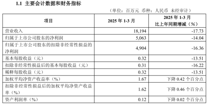 首先看第一季度。在第一季度中,受宏观经济下行、信贷需求疲软及资产端定价承压等多重因素影响,华夏银行营收同比大幅下滑17.73%,创下全年最低点,说明外部环境较为严峻。