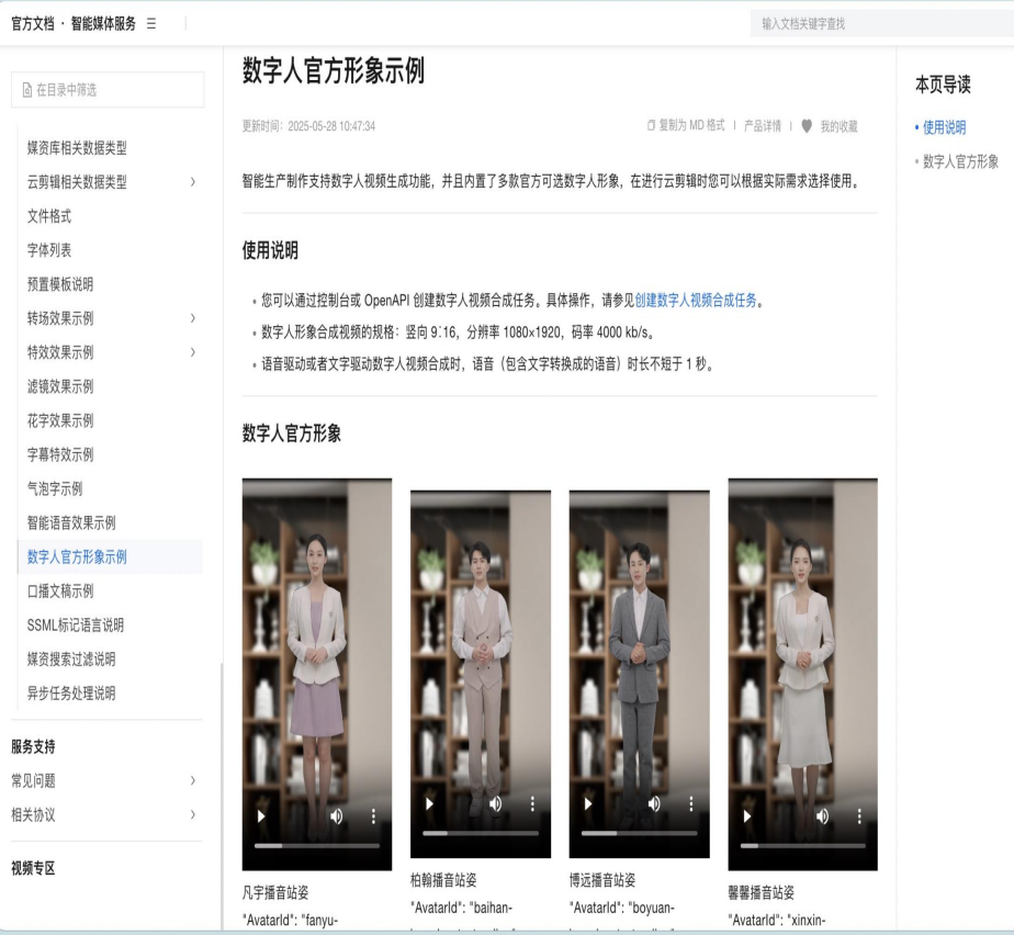3.除了上述独立IP数字人,阿里还有大量没有具体人设的模版数字人。例如阿里云智能媒体服务(IMS)平台内置的官方标准数字人形象。提供了凡宇、柏瀚、博远、馨馨等数十个标准形象模板,阿里云万象数字人平台也提供了灵竞、灵柏等标准数字人形象,供企业或个人快速生成自己的数字人。