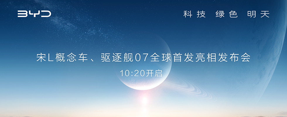 4月18日,比亚迪汽车将在上海车展首发亮相宋L概念车及驱逐舰07,宋L概念车作为王朝网全新B级纯电SUV,驱逐舰07则是海洋网首款B+级超混轿车,更多发布会亮点欢迎关注直播现场。