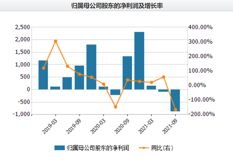 中公教育是我国最早提供公务员考试培训的企业之一,目前业务横跨招录考试培训、学历提升、职业能力培训三大板块,提供超过 100 个品类的综合职业就业培训服务,有着行业龙头的地位。2021年是教育板块损失惨重的一年,而中公教育股价的下跌与其业绩的惨淡直接相关,今年第三季度,中公教育营收同比减少了69%,亏损近8亿元。从下图可以看到,单看净利润,在过去12个季度中,这是中公教育亏损最严重而且非常突兀的一个季度。