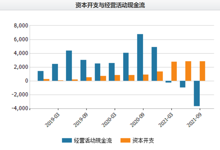 净利润的巨额亏损,将直接影响对企业来说至关重要的现金流。从下图可以看到,进入2021年后,中公教育的经营活动所用现金流就为负数,且规模不断增加,而资本开支却又居高不下,相当于在不断地“流血”。
